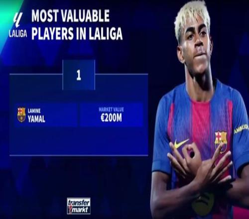 1 巴薩-亞馬爾(18歲) 2億歐(較上期保持不變)