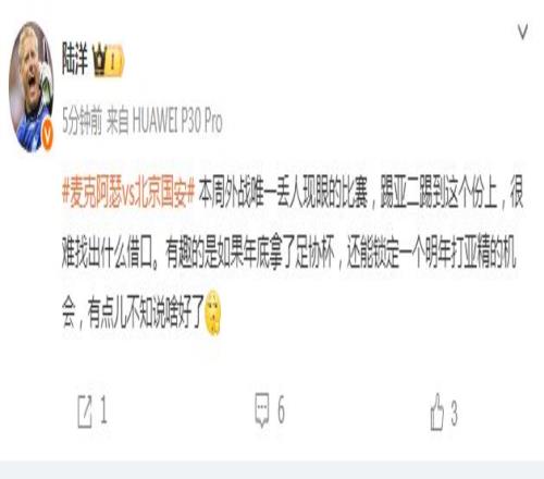 雷速體育10月2日宣 亞冠二級(jí)聯(lián)賽第2輪的對(duì)決中,北京國(guó)安做客0-3完敗給澳超球隊(duì)麥克阿瑟。媒體人賽后集體怒批國(guó)安丟人現(xiàn)眼,甚至表示,如果不上主力就該給主力直接提前放假,根本不想贏球。